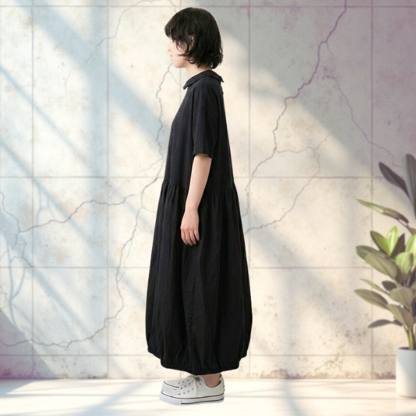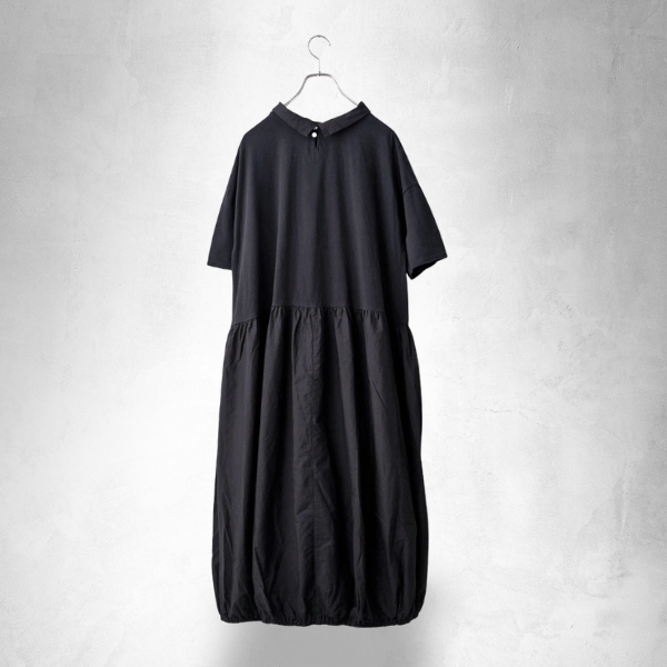 天竺生地と布帛の異素材を組み合わせたバルーンワンピース。