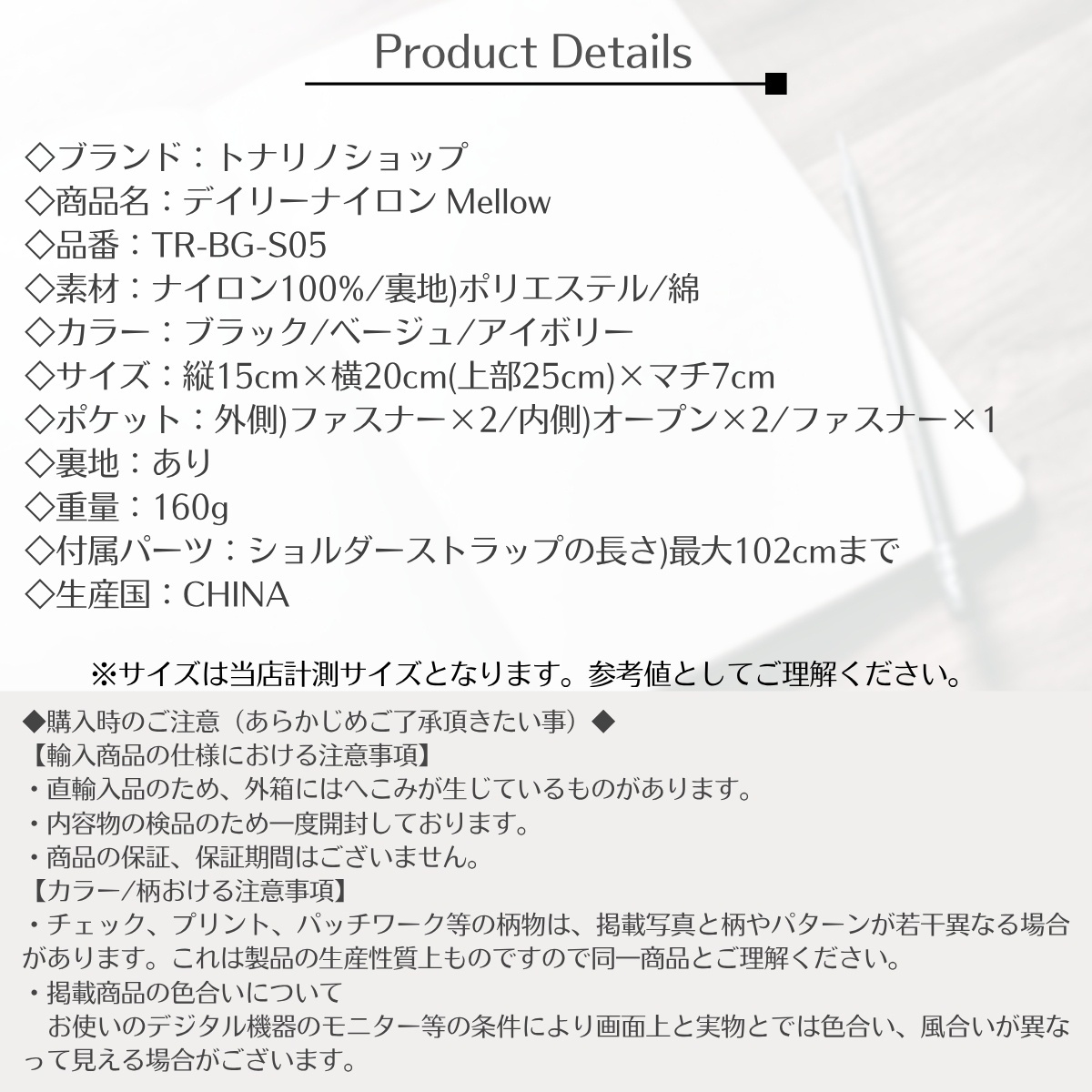 トナリノショップ デイリーナイロン Mellow ショルダーバッグ レディース メンズ 軽量 ナイロン サコッシュ 斜めがけ カジュアル アウトドア 旅行
