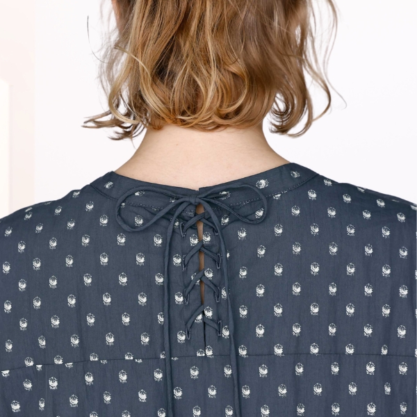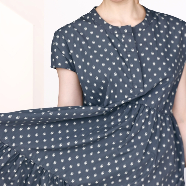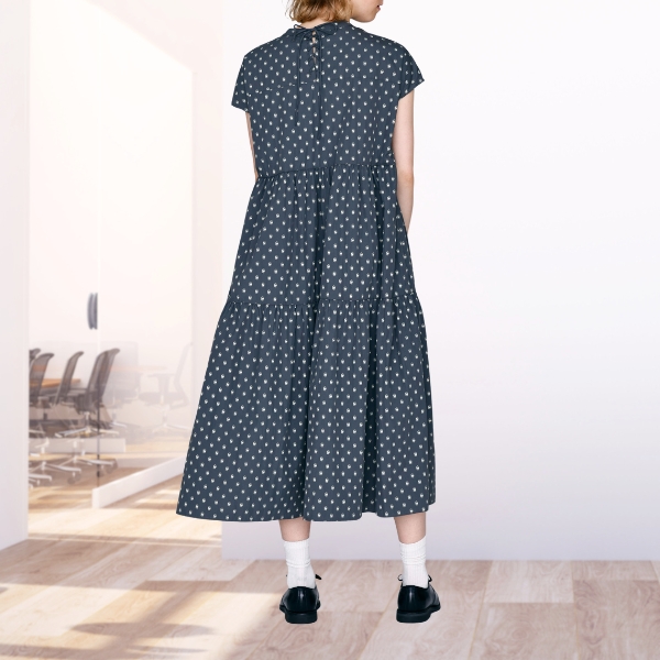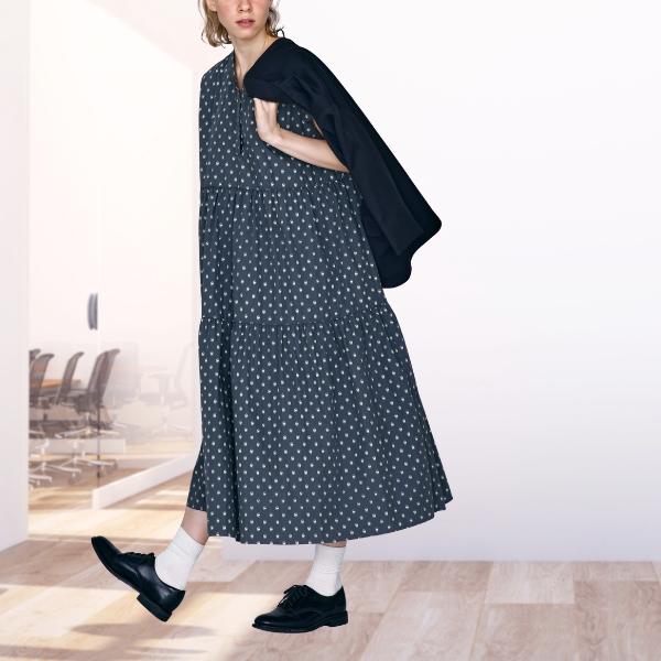 モザイクドットのような柄行きが大人っぽく、ティアードデザインとのバランスをとっています。