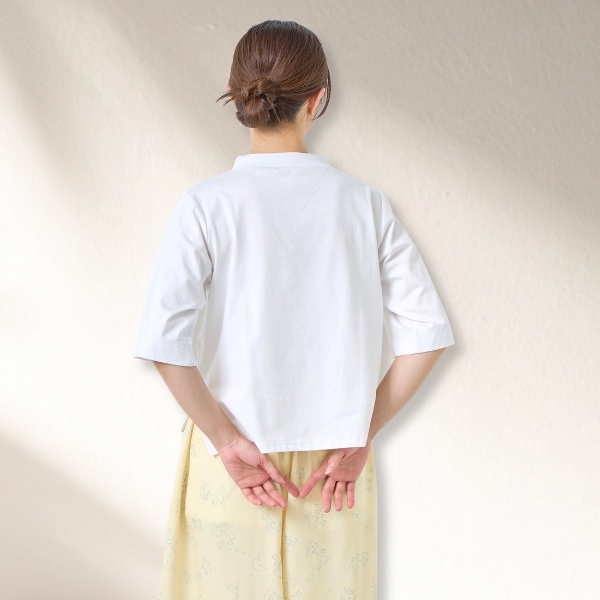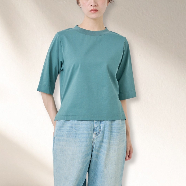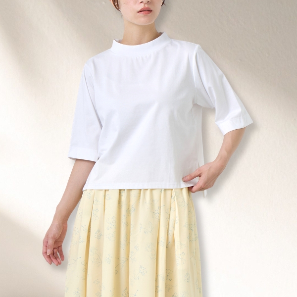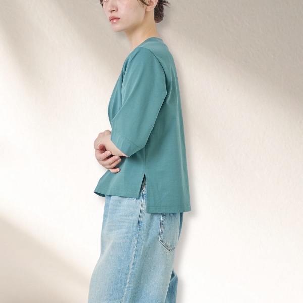 軽く肌に馴染む綿ポリ混紡ののシルケットカットソー素材を使用し、さらっとした着心地です。