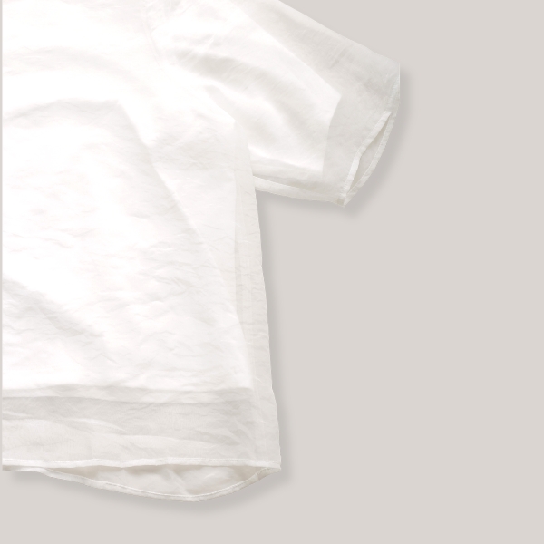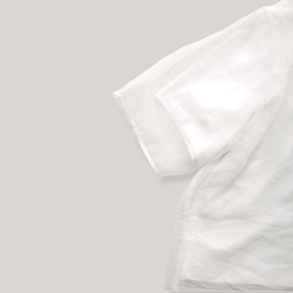 オーガンジー素材の身丈・袖丈を長く設定することで、透け感が垣間見え、涼しげな着用感を演出。