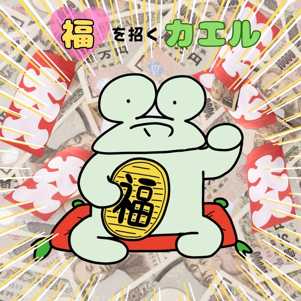 キラキラと光るホログラムに福を呼び込むカエルが現れ、あなたを誘います。