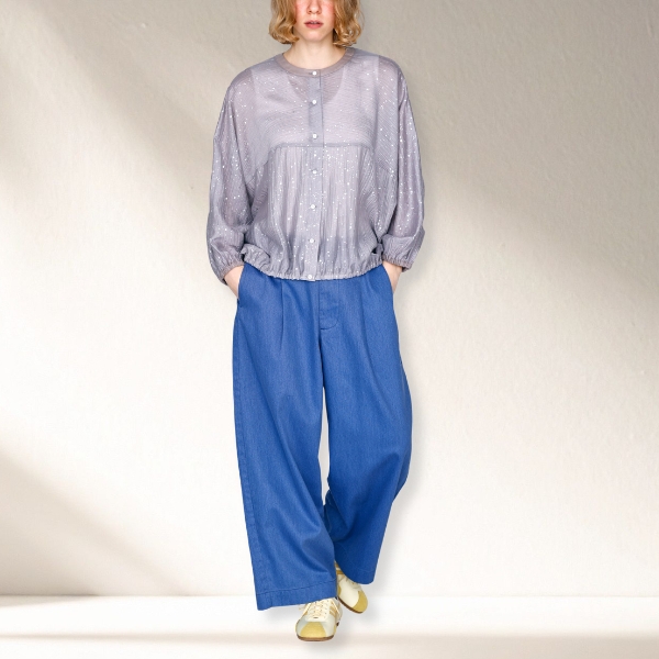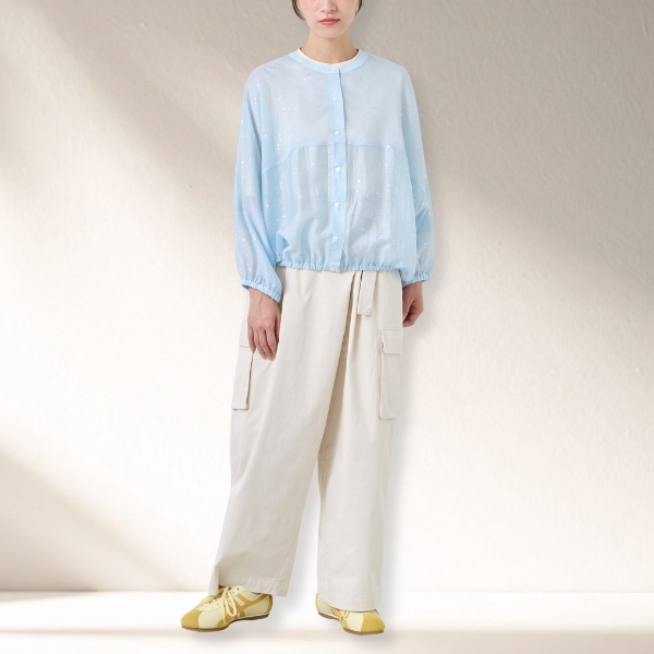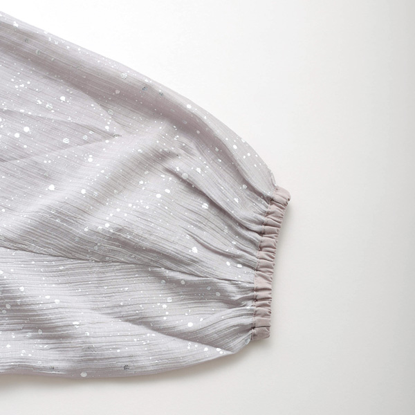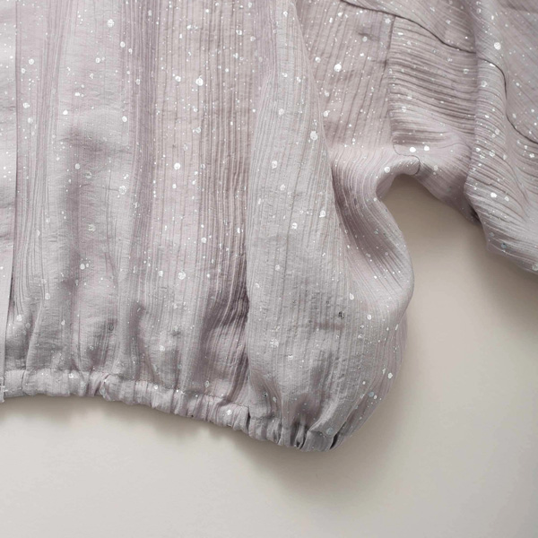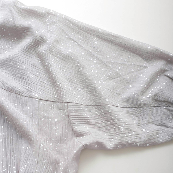 たっぷりと取ったドルマンスリーブはリラックス感があり、袖口と裾にゴムを入れることで、ギャザーで膨らみを持たせたシルエットに。