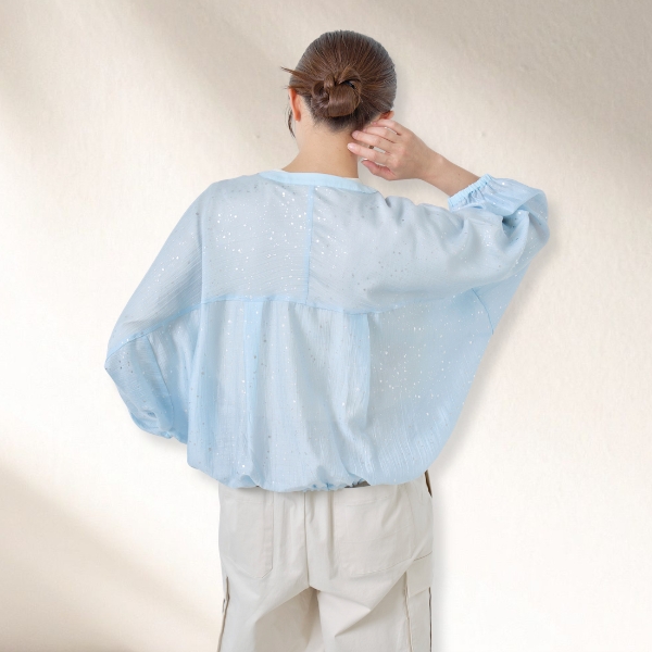 ◇商品名:箔プリントバルーンシルエットブラウス SNOW