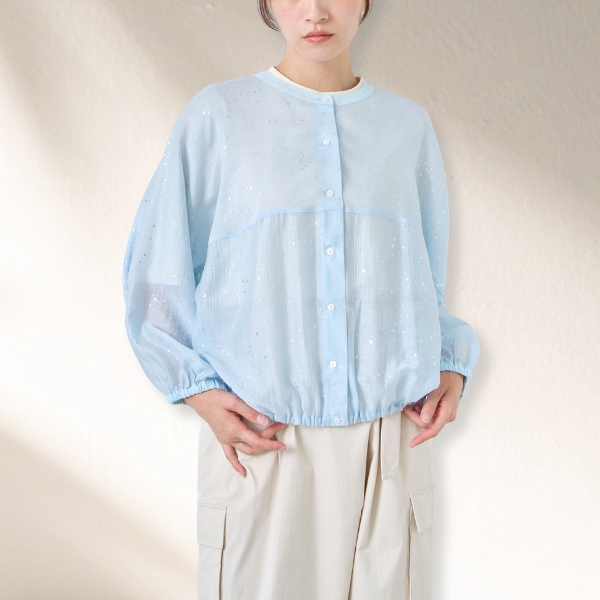 シワになりにくい素材で、程よい透け感が涼しげな1枚。