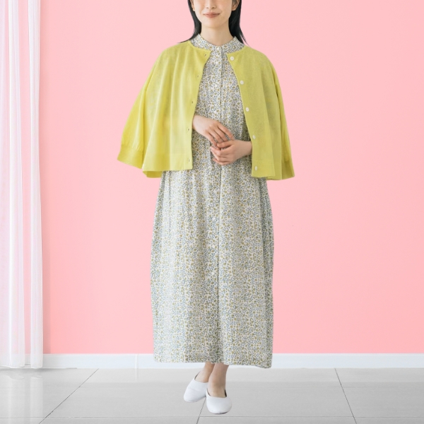 春の訪れを感じさせてくれるシトロンをプリントしたワンピース。