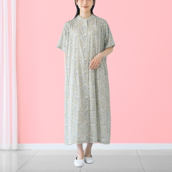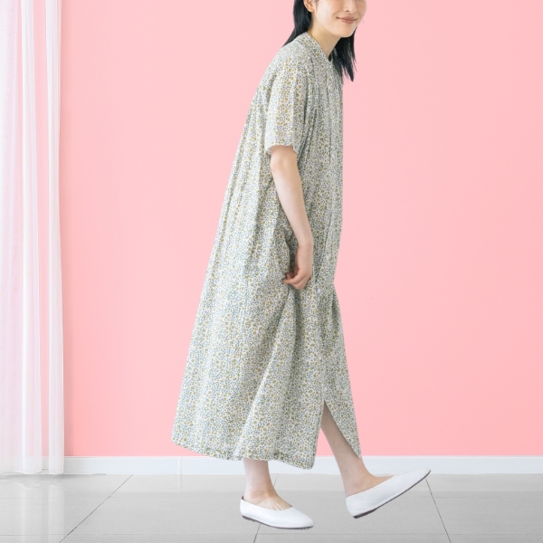 肩にたくさんのギャザーを施し、とてもリラックス感のある着心地のワンピースです。