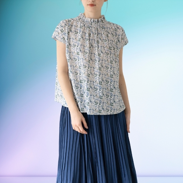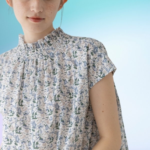 リバティタナローンで仕立てたsosotto人気のシャーリングブラウス。
