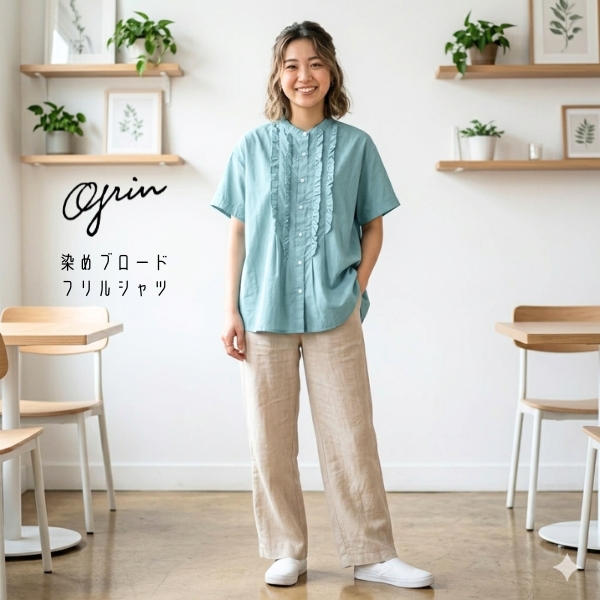 ◇商品名:染めブロードフリルシャツ