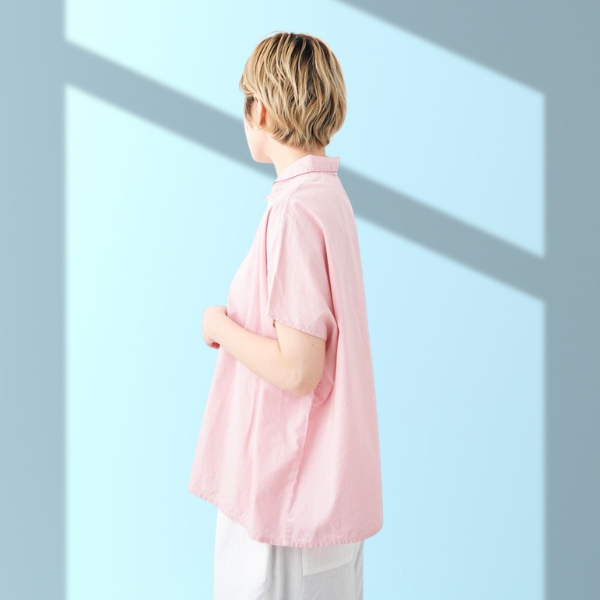 コットン100%の薄手の布帛生地で裾広の風通しの良いエアリーな着心地です。