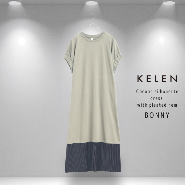 KELEN / ケレン 裾プリーツドッキング コクーンシルエットワンピース BONNY
