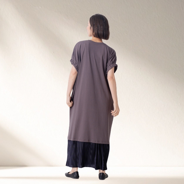 ◇商品名:裾プリーツドッキング コクーンシルエットワンピース BONNY
