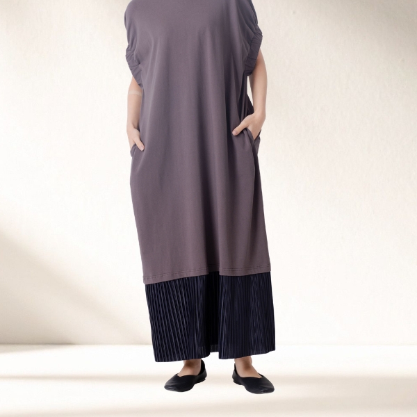 スカート部分にはポリエステル100%のプリーツ加工を施したシアー素材をドッキング。