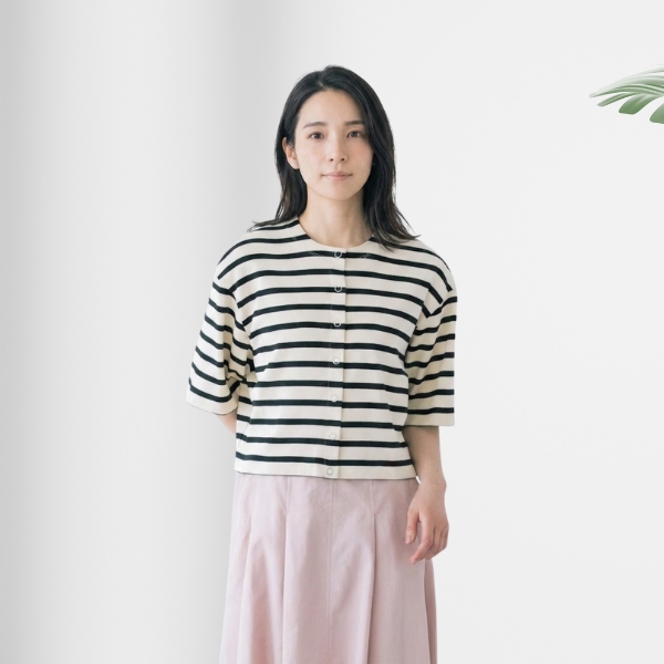 半袖仕様でロングシーズン活躍するスナップカーディガン。