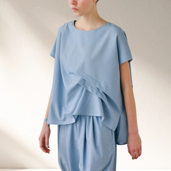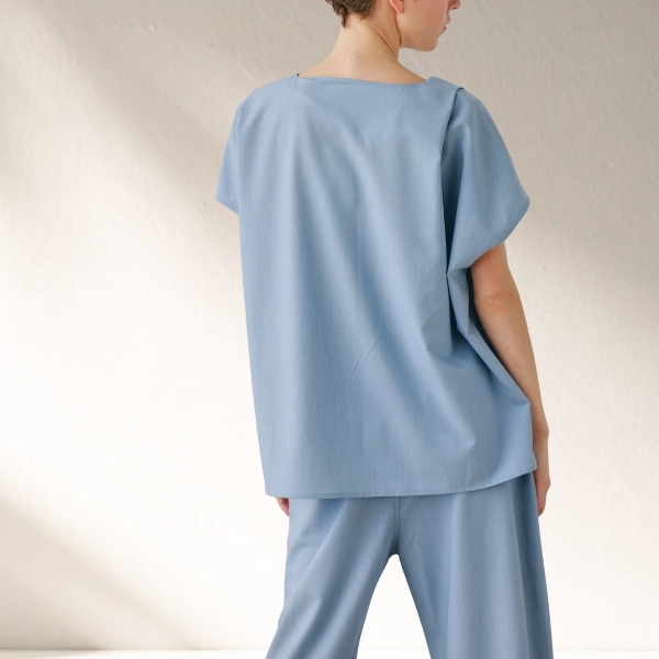 程よい落ち感とストレッチ性を備えたTR素材で仕上げたプルオーバートップス。