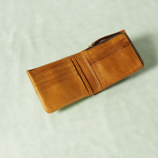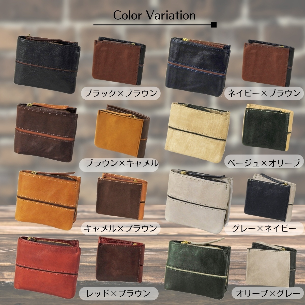 ヴィンテージ感漂うソフトな風合いのバイカラー折財布。